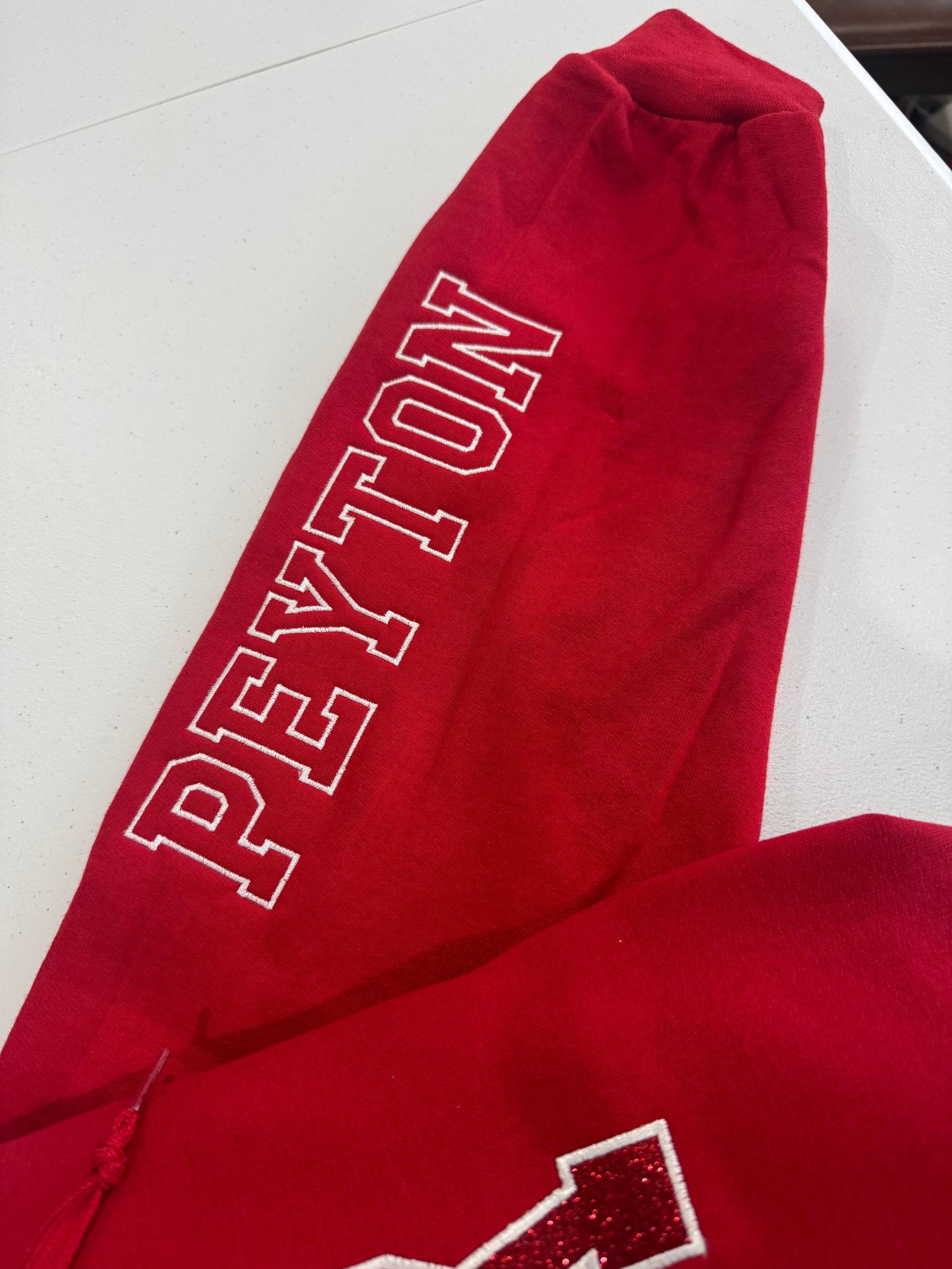 In instructions box at checkout make sure to add your choice of thread color, glitter color and name for the sleeve personalization. See the attached photos for color choices.