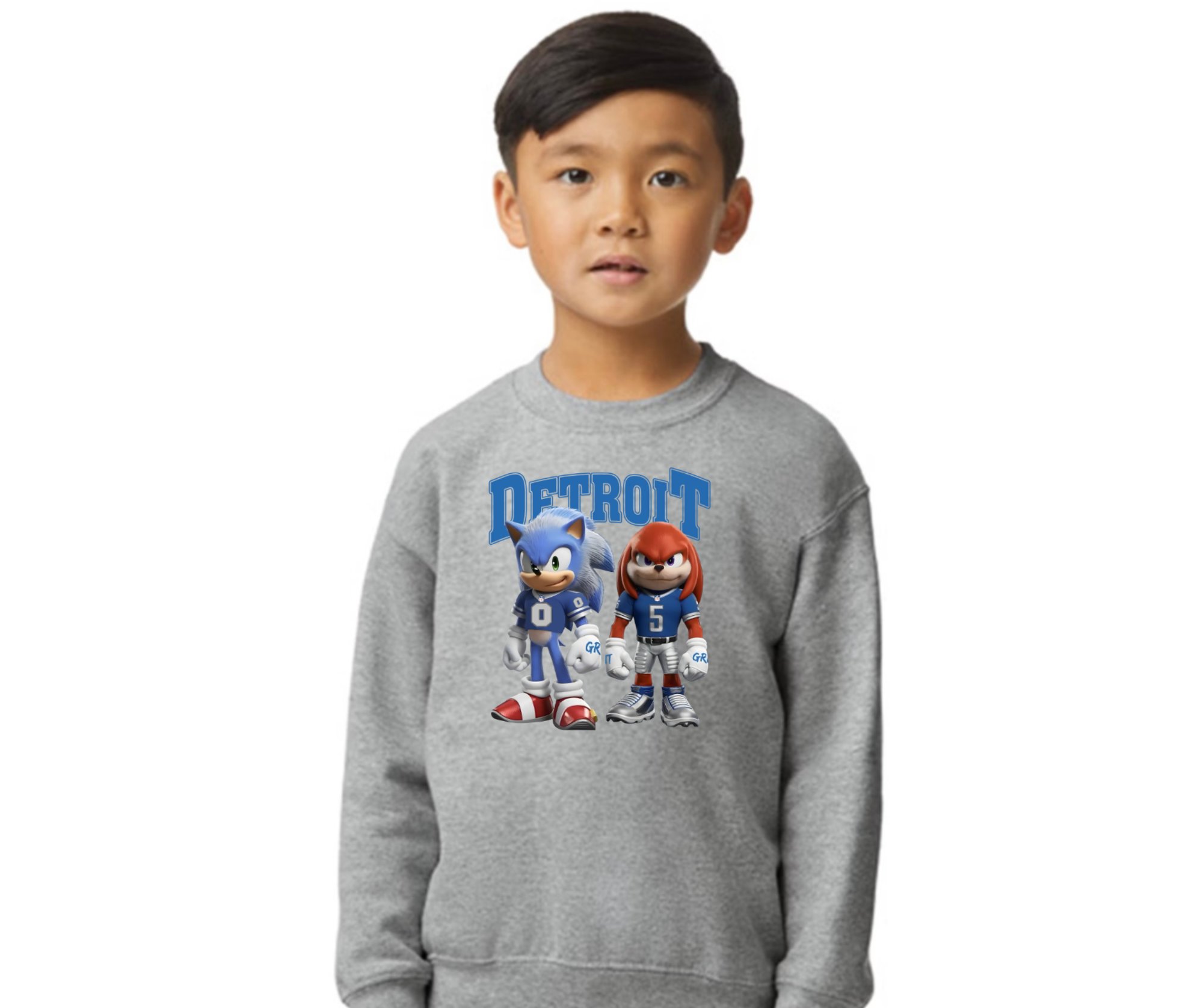 Let's GO DETROIT! Score big with our adorable kids' shirt featuring Detroit and Sonic and Knuckles dressed in Lions gear! Perfect for young fans who love Sonic and knuckles and the Lions Montgomery and Gibbs. Made from soft, comfortable fabric, this playful design combines your child's favorite game characters with team spirit — making it a must-have for game days, playdates, or everyday wear. Let your little one show off their love for gaming and football all in one fun, stylish shirt!
