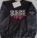 Race wife EMBROIDERED sweatshirt customized with sleeve detail included
