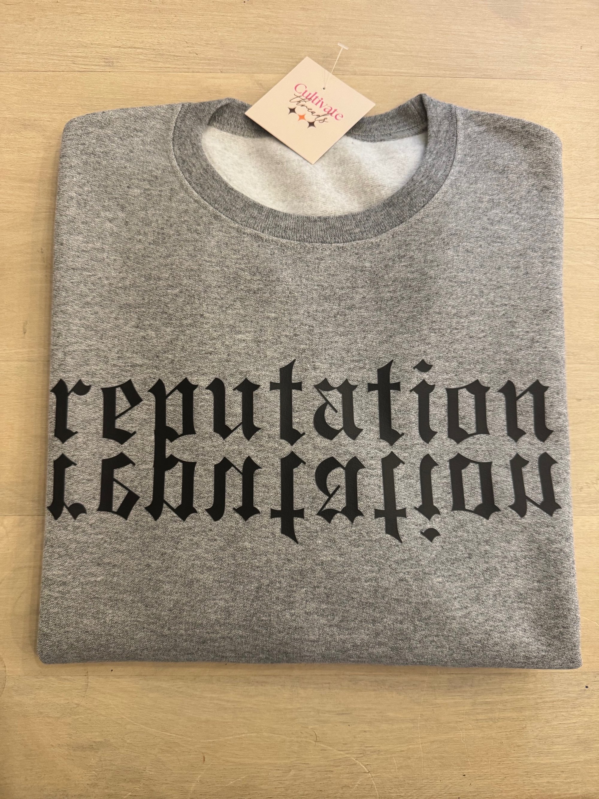 Step into the bold, fearless world of Reputation with this must-have sweatshirt. Featuring a sleek, mirrored design of the iconic album title, this sweatshirt is perfect for Swifties who want to channel that confident, edgy vibe Taylor embodied during her Reputation era. Whether you're at a concert, chilling with friends, or just rocking your everyday look, this sweatshirt keeps you cozy while showcasing your love for Taylor’s unforgettable sound and style.