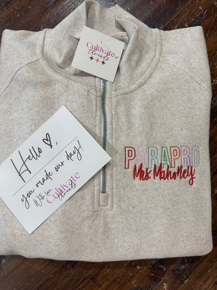 Teacher/parapro/principal name EMBROIDERED custom quarter zip/ crewneck/hoodie